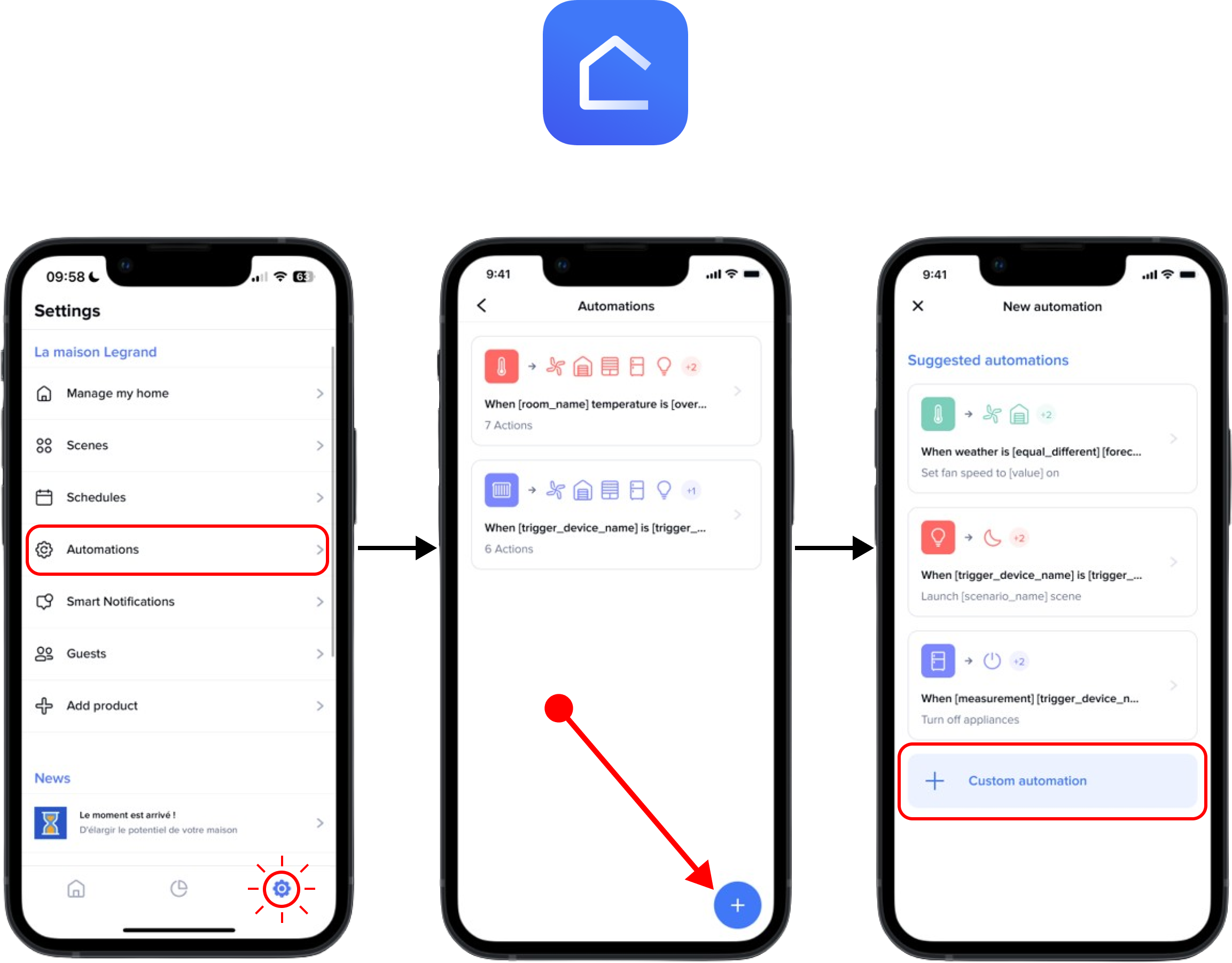 Navigate to Settings, select Automations, tap the ➕ button in the bottom right corner and choose Custom automation.