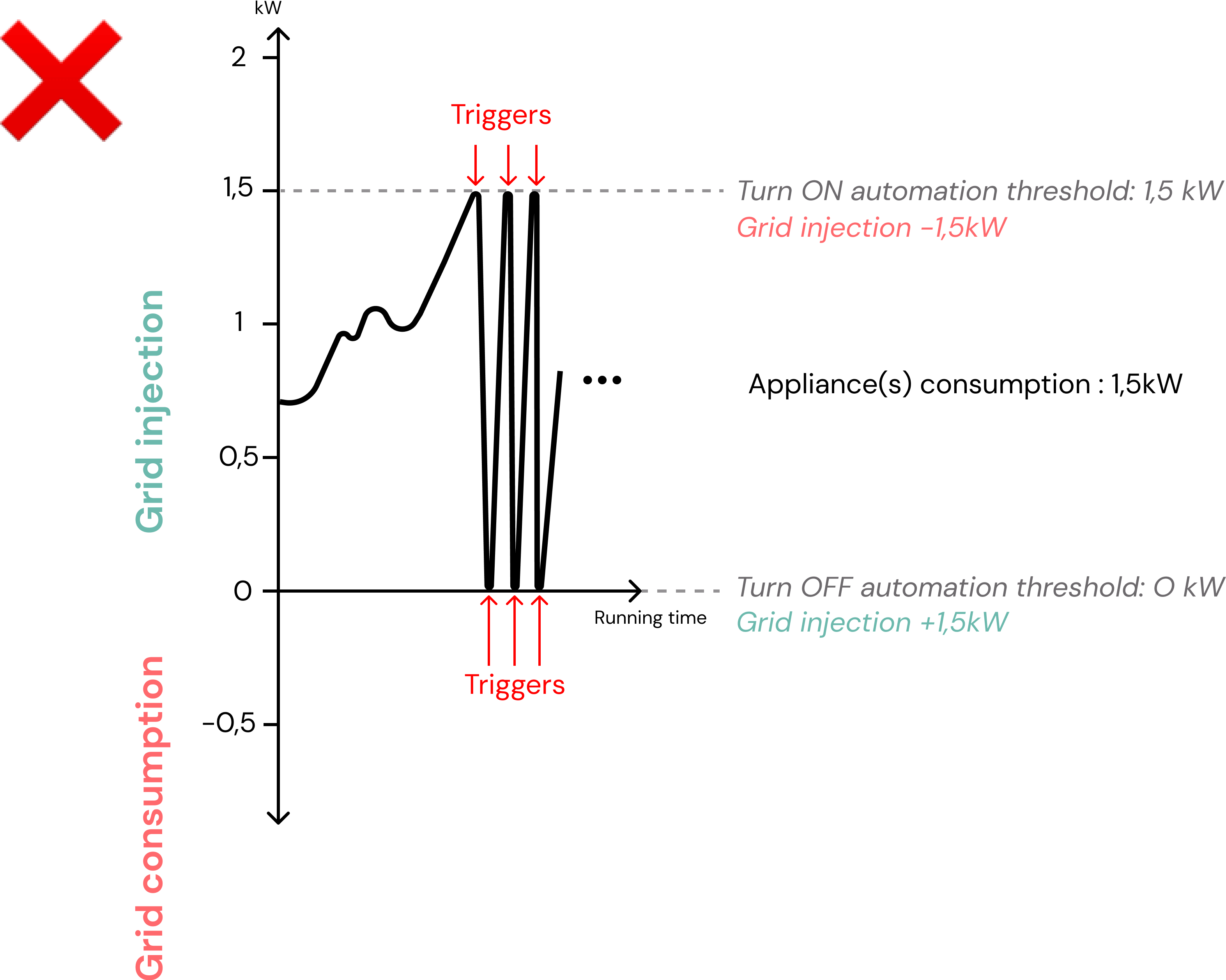 ⚠️ When adjusting the threshold, add a safety margin to ensure sufficient grid injection. You can also deliberately set a low activation threshold to use all the energy injected into the grid, but this compromises the principle of saving energy and money created by automations.