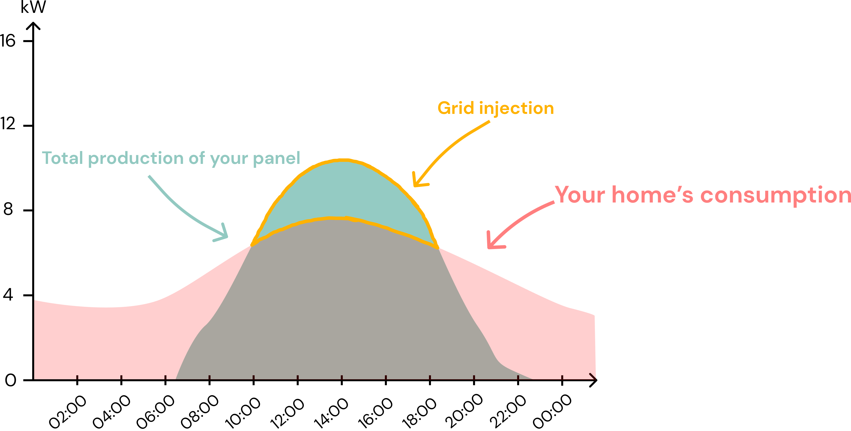 - Grid injection: This refers to the excess power sent back to the grid after your home’s consumption needs are met. We recommend using this for your automations because it leverages the surplus energy that would otherwise be lost.