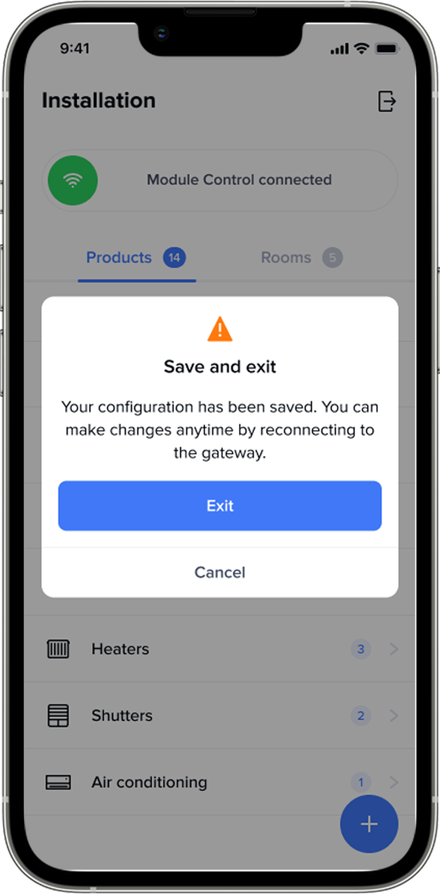 Todas las modificaciones realizadas durante la instalación vía la aplicación Home + Pro están grabadas instantáneamente en la pasarela.