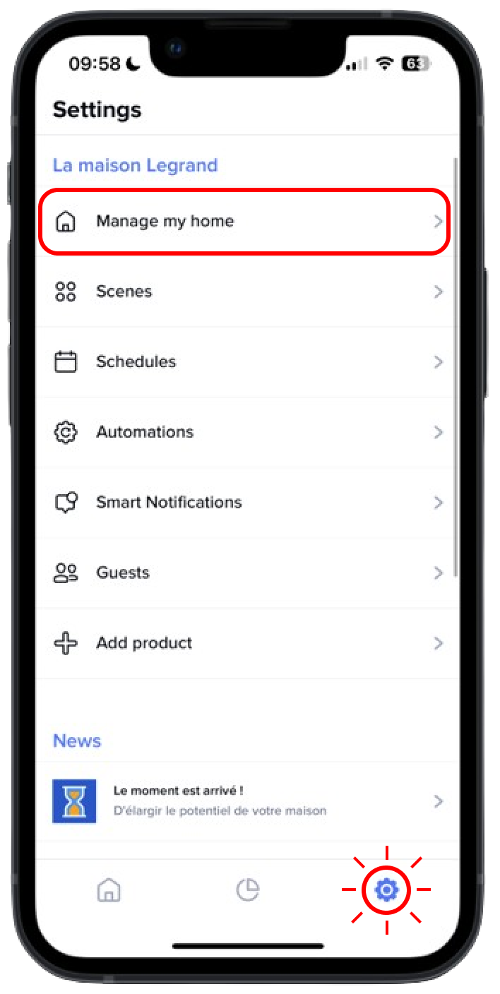 2. Allez dans Paramètres et sélectionnez Gérer Ma Maison