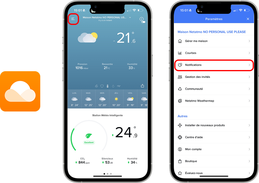 ⚠️ Assurez-vous que les notifications pour l'application Netatmo Weather soient activées sur votre Smartphone.