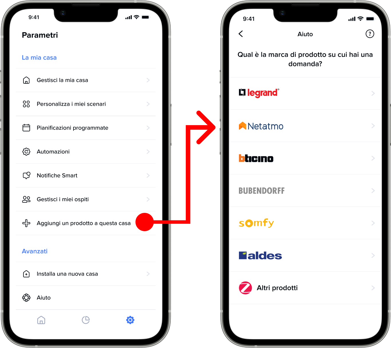 2. Vai a parametri e scegliere "Aggiungi un prodotto a questa casa"