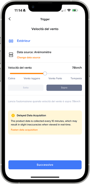 Se desideri accelerare l’acquisizione dei dati e attivare più rapidamente le tue automazioni in presenza di condizioni specifiche (velocità del vento, livello di rumore, livello di precipitazioni), puoi creare una notifica nell’app Netatmo Weather.