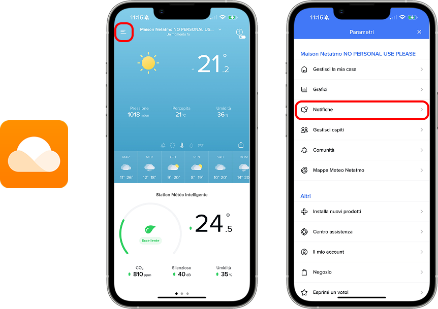 ⚠️ Assicurati che le notifiche per l'app Netatmo Weather siano attivate sul tuo smartphone per garantire un corretto trasferimento dei dati.