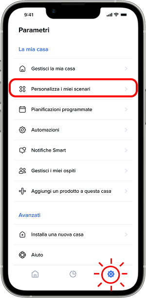 2. Vai ai Parametri e seleziona 'Personalizza i miei scenari'