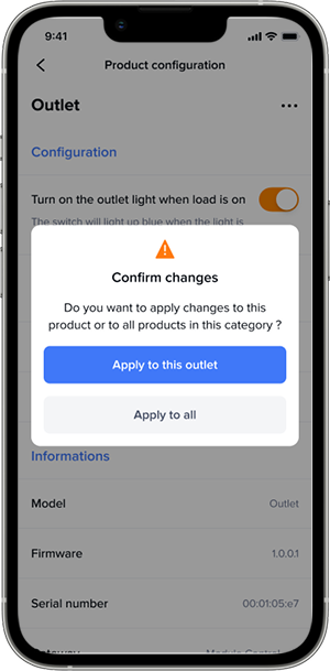 Basisconfiguraties, zoals het type dimmer, de LED-indicator of het vergrendelen van de stekker, kunnen worden uitgevoerd door op het product te klikken en de instellingenpagina te openen (identiek aan Home + Control). Scenario’s, planningen en automatiseringen kunnen worden geconfigureerd in Home + Control.