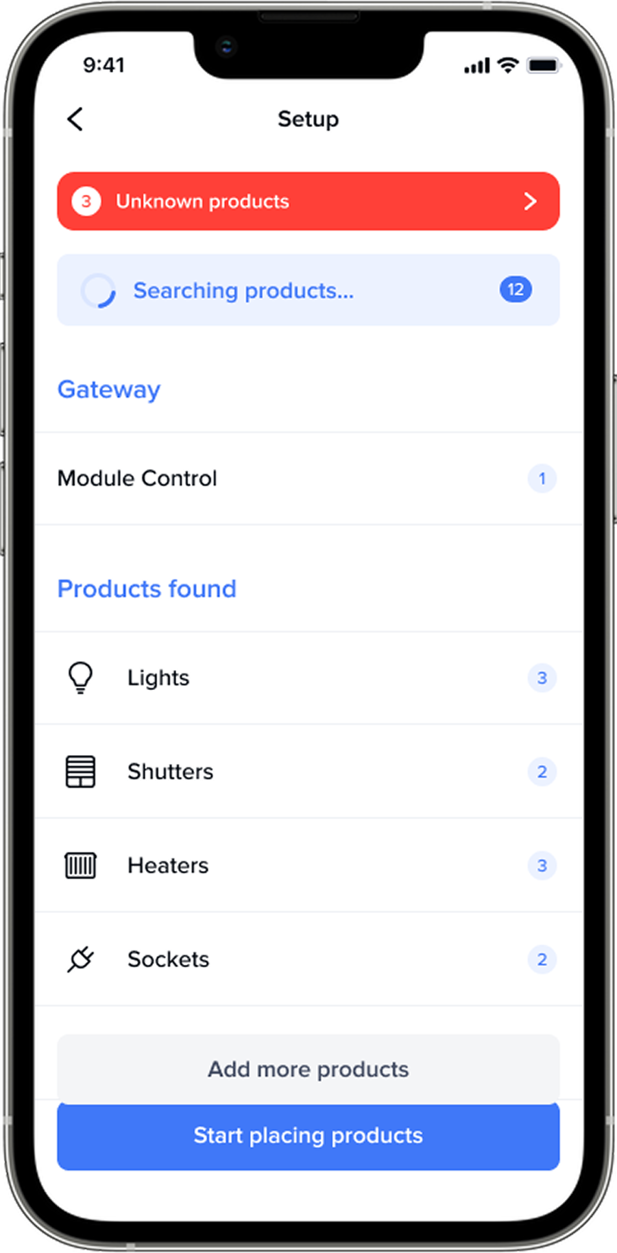 Tijdens de installatie kan het gebeuren dat veel producten tijd nodig hebben om te verschijnen. Het aantal onbekende producten zal uiteindelijk dalen tot nul.